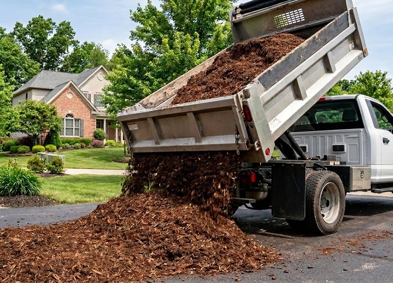 Proudly serving homeowners in Fredericksburg, Stafford, and Spotsylvania counties with fresh mulch delivery and expert installation.